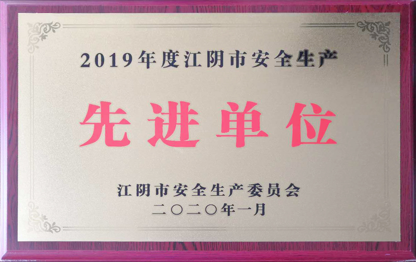 2019年度江陰市安全生產(chǎn)先進(jìn)單位