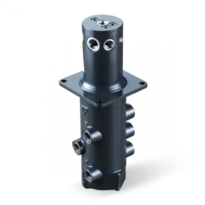 產(chǎn)品簡(jiǎn)介:液壓中央回轉(zhuǎn)接頭是挖掘機(jī)、起重機(jī)、高空作業(yè)車(chē)、盾構(gòu)機(jī)、旋挖機(jī)、平地機(jī)、海上作業(yè)平臺(tái)等液壓系統(tǒng)中的關(guān)鍵零部件,其作用是連接整個(gè)液壓系統(tǒng)中固定與旋轉(zhuǎn)部分的液壓管路,使系統(tǒng)液壓管路上下兩部分具有相對(duì)回轉(zhuǎn)運(yùn)動(dòng)360度而不發(fā)生干擾。